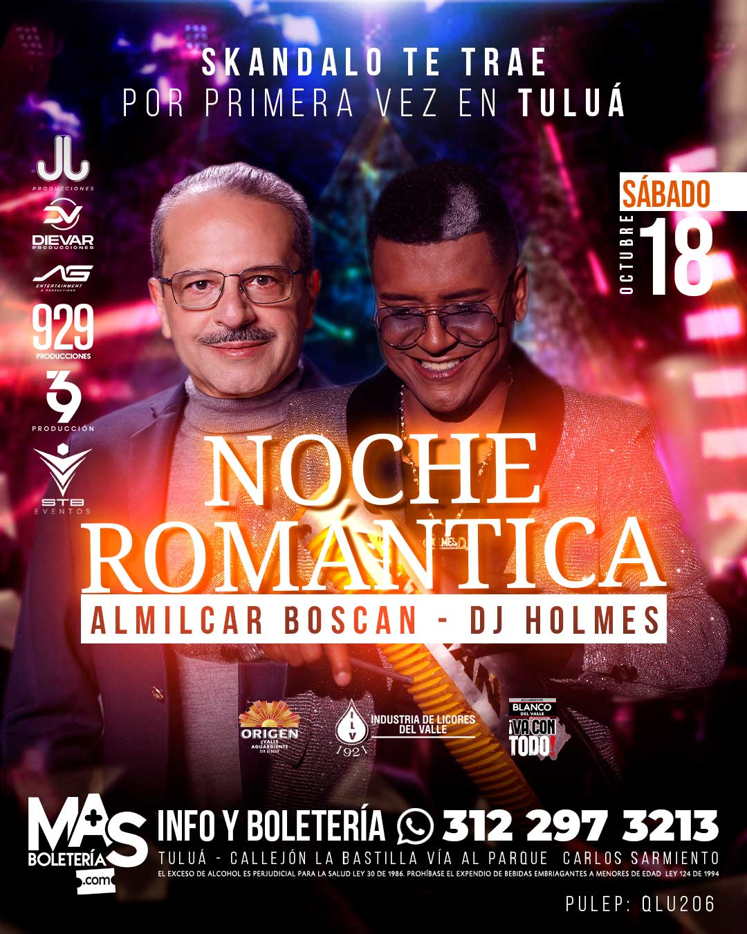 TULUA, presenta su NOCHE ROMANTICA, el sabado 18 de Octubre 2025, CON AMILCAR BOSCAN, DJ HOLMES CON LAS DIOSAS DE LA SALSA- Info +57 3122973213